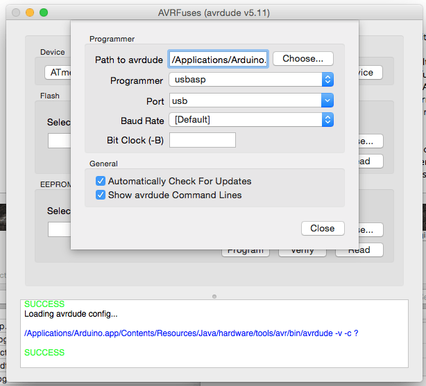 – When you open AVRFuses for the first time, the preferences pane will open. Select the path to AVRDUDE. On Mac OSX and if you have installed AVRDUDE yourself, the path would be something like /usr/local/bin/avrdude.
